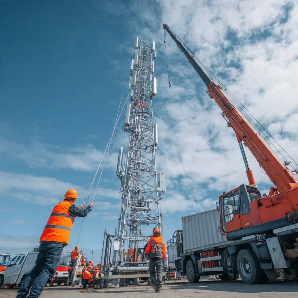 Safe and professional tower installation using modern equipment.